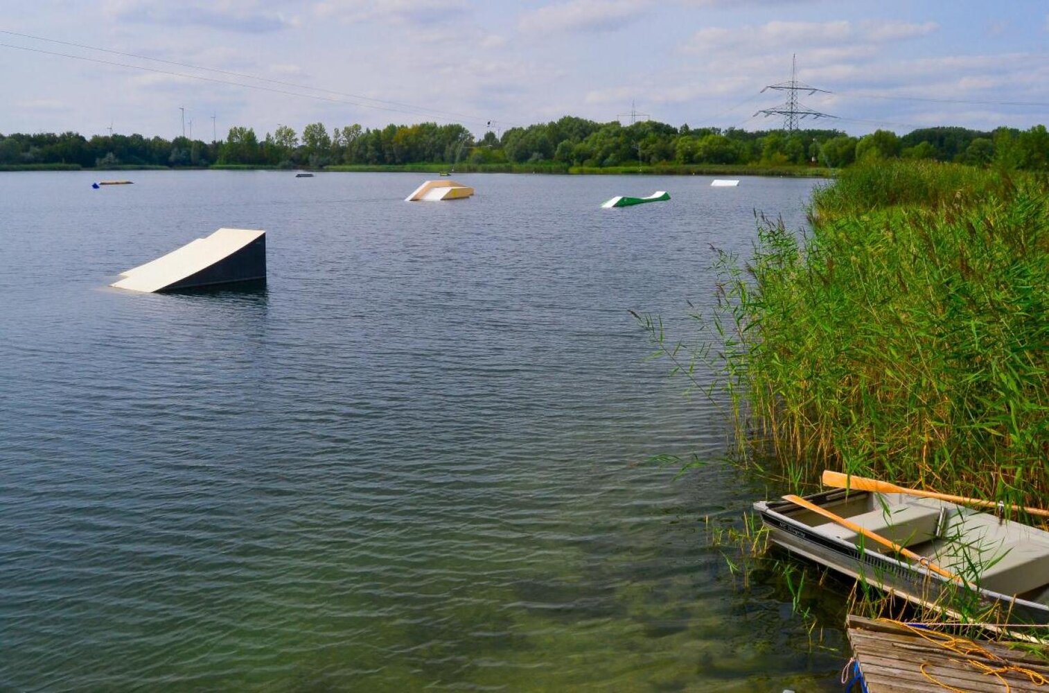 Egal ob Anfänger oder Fortgeschrittene – die Wasserskianlage Hohenweiden können alle nutzen, die die Geschwindigkeit auf dem Wasser nicht scheuen. An der Fünf-Mast-Anlage stehen neun Mitnehmer mit einer Seillänge von insgesamt 800 Metern zur Verfügung, sodass mehrere Personen Wasserski oder Wakeboard fahren können. Wer den Sport schon länger betreibt und zu den Profis gehört, kann Kicker und Slider nutzen. Die entsprechende Ausrüstung gibt es vor Ort.
