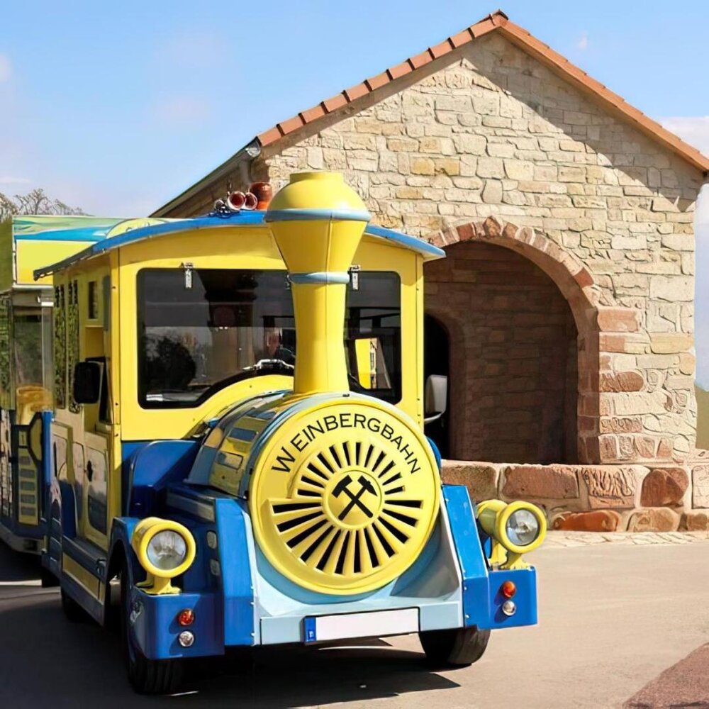 In der Saison von April bis Ende Oktober fährt die Weinbergbahn im Shuttlebetrieb, von der Marina Mücheln bis zum Weinberg und zurück zur Marina! Die neue Streckenführung der Weinbergbahn ist kurz, charmant – und voller Highlights. Im Shuttlebetrieb verbindet die Bahn drei zentrale Orte rund um den Geiseltalsee.