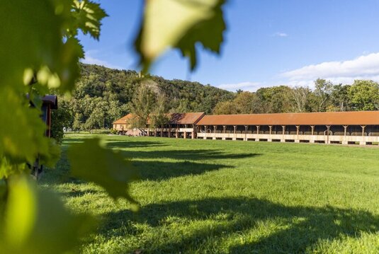 Das Gradierwerk Louise in Bad Sulza stammt aus dem Jahr 1754. Es hat eine andere Attraktion, die es so in Saale-Unstrut nur hier gibt: die Zerstäuberhalle, in der die Sole so fein vernebelt wird, dass Sie Ihre Hand vor Augen nicht mehr sehen. Der feine Solenebel wird aber besonders gut von den Lungen aufgenommen. Sie sollten sich bei einem Besuch die Zerstäuberhalle also nicht entgehen lassen. Gerade Menschen mit Heuschnupfen und Asthma profitieren davon. Im Kurpark lohnt sich ein Besuch der modernen Touristinformation im historischen Gebäude des Inhalatoriums. Hier können Sie an einem Automaten Weine probieren und regionale Soleprodukte wie Solebonbons und Solemarmelade erwerben.