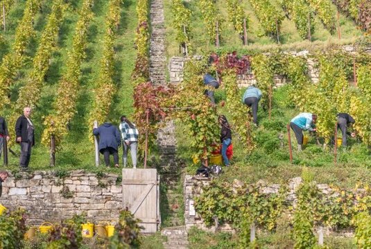 In den Steillagen der Weinberge im Qualitätsweinanbaugebiet Saale-Unstrut kommen keine Lesemaschinen zum Einsatz, daher erfolgt die Weinlese größtenteils von Hand. Das ist zum einen sehr aufwendig, trägt aber zum anderen dazu bei, die Qualität der Trauben zu bewahren. Je höher die Qualität der Trauben, umso qualitätvoller später der Wein.