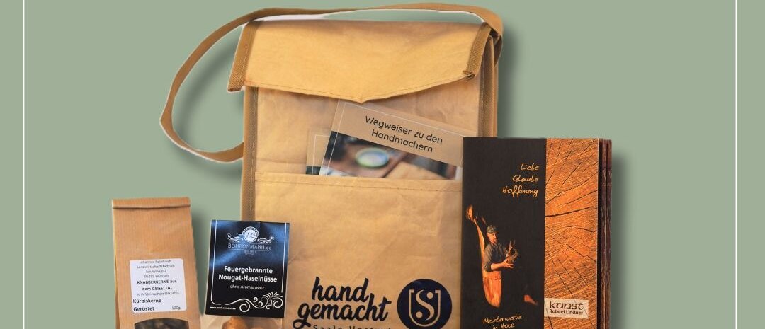 Die Tasche präsentiert ausgewählte Kostbarkeiten aus der Region – Produkte, die mit Sorgfalt, Können und Herz entstanden sind. Jede Ausgabe erhält durch ihr wechselndes Sortiment einen eigenen Charakter. So wird die Tasche zum kleinen Stück Regionalgeschichte und zeigt, wie lebendig und vielfältig das Netzwerk der Initiative handgemacht Saale-Unstrut ist.