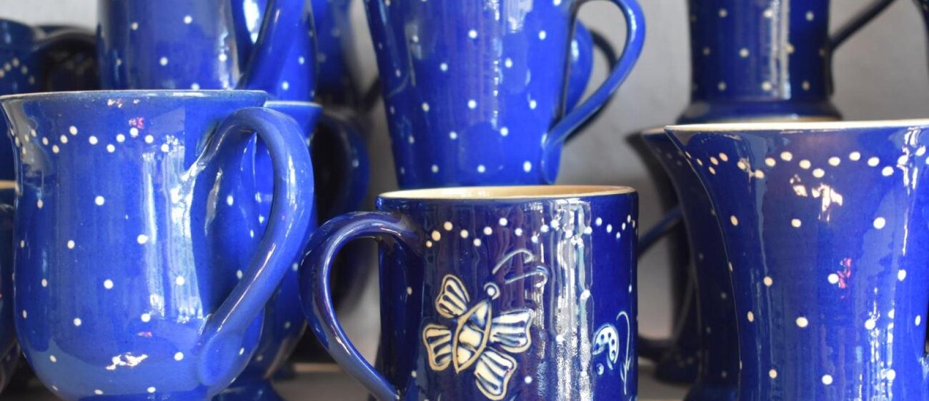Die Töpferei Frömel stellt Gebrauchs- und Zierkeramik in Bürgeler blau-weiß, braun mit weißem Ritzdekor (matt) und blau mit weißem Ritzdekor (glänzend) her. Circa 95 Prozent der Produkte entstehen durch Freidrehen auf der Töpferscheibe, die restlichen 5 Prozent, wie zum Beispiel ovale Brottöpfe oder Butterdosen, durch Gießen in vorgefertigten Gipsformen.