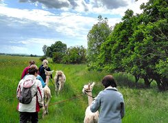 Die beruhigende Wirkung der Alpakas erlebt man am besten bei geführten Wanderungen durch die Feldlandschaft rund um Lieskau. Die Touren dauern ca. 1,5 bis 2 Stunden und bieten eine einzigartige Möglichkeit, mit den Tieren in Kontakt zu treten, die Natur zu genießen und den Alltag hinter sich zu lassen.