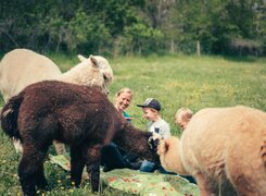Kauen, schauen, sich nicht aus der Ruhe bringen lassen. Einem Alpaka würde es niemals in den Sinn kommen, irgendwelche Etappenziele erreichen – geschweige denn Rekorde brechen – zu wollen. Diese sympathische Take-it-easy-Einstellung überträgt sich zunehmend auf seinen Begleiter. Irgendwann wird die Leine schwerelos, lösen sich die Füße von der Schwerkraft, verwandelt sich der Spaziergang in eine Meditation. Da können selbst die Gehfaulsten – ob jung oder alt – mithalten. Ein perfekter Familien-, Freunde- oder Feierabend-Ausflug.