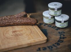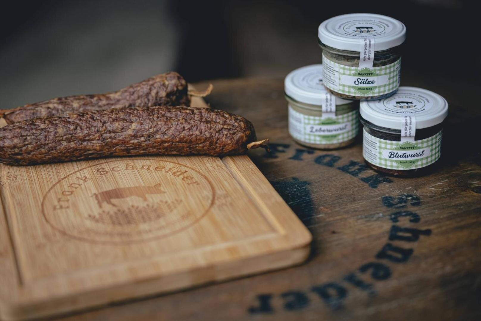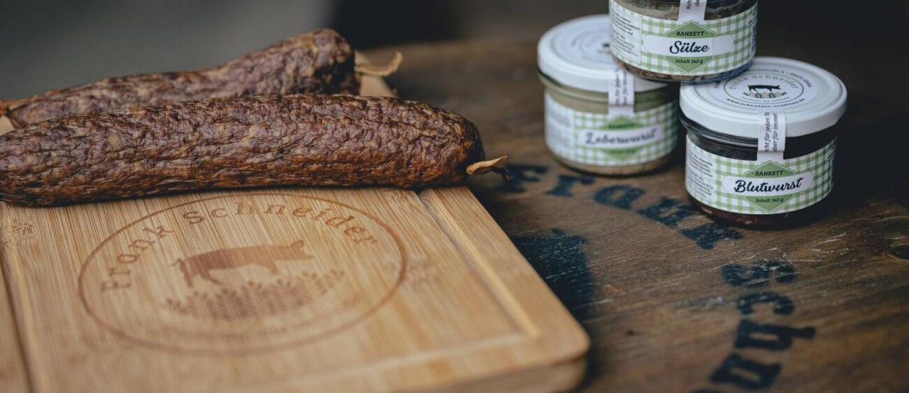 "Sei schlau, kauf eine ganze Sau." Das ist für Handmacher, Landwirt und Metzger Frank mehr als nur ein Spruch. Er verbindet auf seinem Hof in Müncheroda traditionelle Werte mit modernen Bedürfnissen. Von der artgerechten Aufzucht der Tiere bis hin zur fertigen Wurst passiert alles in seiner Obhut. Neben dem Wohl der Tiere und der Qualität der Produkte ist es Frank und seiner Frau Kristin ein besonderes Anliegen, durch ihr Engagement in ihrer Heimat - der Saale-Unstrut-Region - das menschliche Miteinander wieder vermehrt in den Fokus zu rücken. So darf ein lockerer Plausch an der Wursttheke nicht zu kurz kommen. Wer also mehr über Frank und seine Schweine erfahren und die hervorragende Wurst kosten möchte, sollte unbedingt einen Ausflug nach Müncheroda machen.