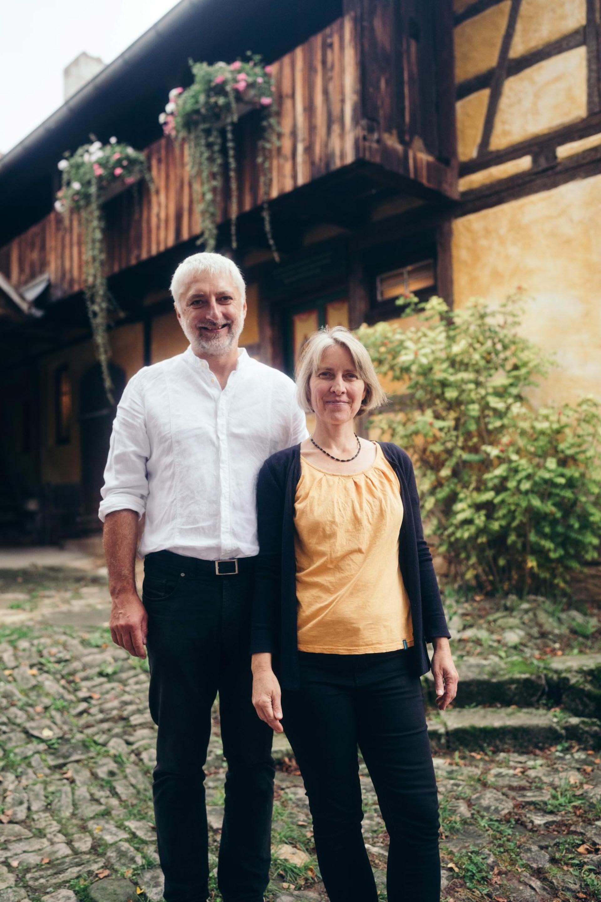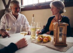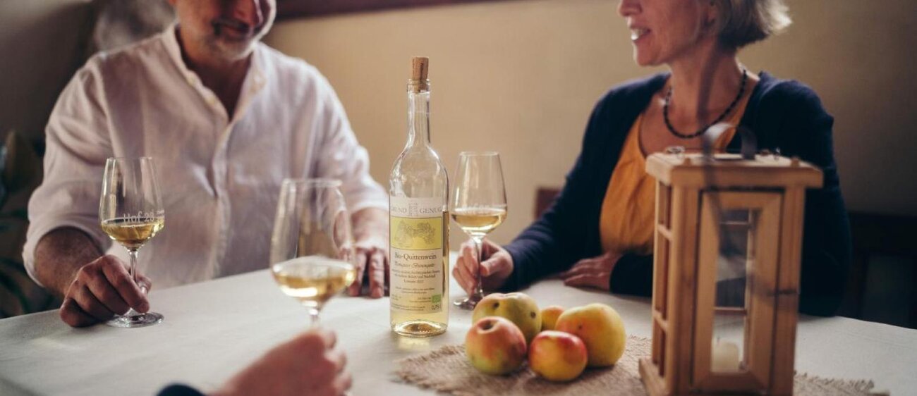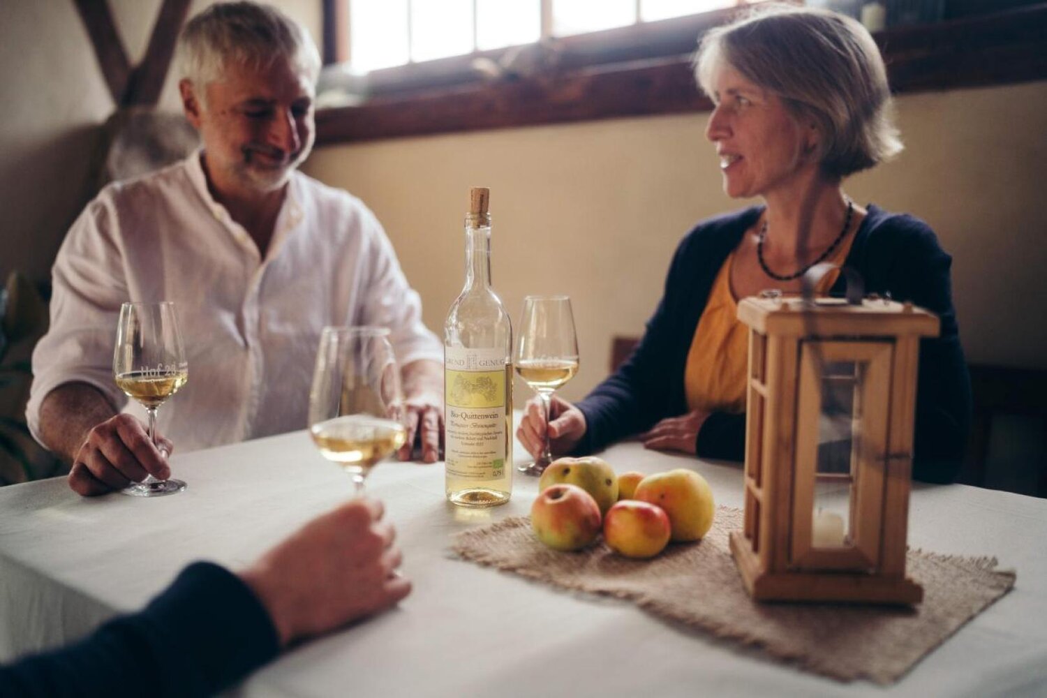 In südexponierter Lage des Reinstädter Grundes, einem malerischen Seitental des Saaletals, befindet sich ein wahres Kleinod. Im denkmalgeschützten Zweiseitenhof von Alexander Pilling und Susanne Mohr werden nach alter Tradition fruchtige Obstweine hergestellt. Zwei gemütliche Ferienwohnungen laden zum längeren Verweilen ein. Ein besonderes Anliegen ist die Wiederbelebung des traditionellen Streuobstanbaus und daraus gewonnener Produkte. Die alten und neu angelegten Streuobstwiesen sind ein echtes Refugium für Mensch und Natur. Hier gedeihen schmackhafte Äpfel, Quitten, Mirabellen und Pflaumen. Aus den Früchten entstehen Bio-Qualitätsweine in der hauseigenen Obstweinkellerei. Zudem ist die Mosterei alljährlich ab Mitte September geöffnet. Neben sortenreinen Apfel-, Quitten- und Steinobstweinen werden Met und Würzweine hergestellt. Verkostungen finden auf Anfrage auf dem Hof, beim beliebten Obstweinlauf oder auf den Reinstädter Landmärkten statt. Letztere bieten alljährlich am letzten Sonntag im Mai und am dritten Sonntag im Oktober Gelegenheit, Genuss und Qualitätsprodukte dieses Landstriches kennenzulernen. Auf Wunsch können Besucher sogar mit anpacken und die Ernte, Schnitt oder traditionelle Mahd hautnah miterleben. Alexander Pilling und Susanne Mohr möchten Sinnesfreude schaffen, Aromen entdecken und das Bewusstsein für ein Leben im Kreislauf der Jahreszeiten schärfen.
