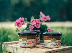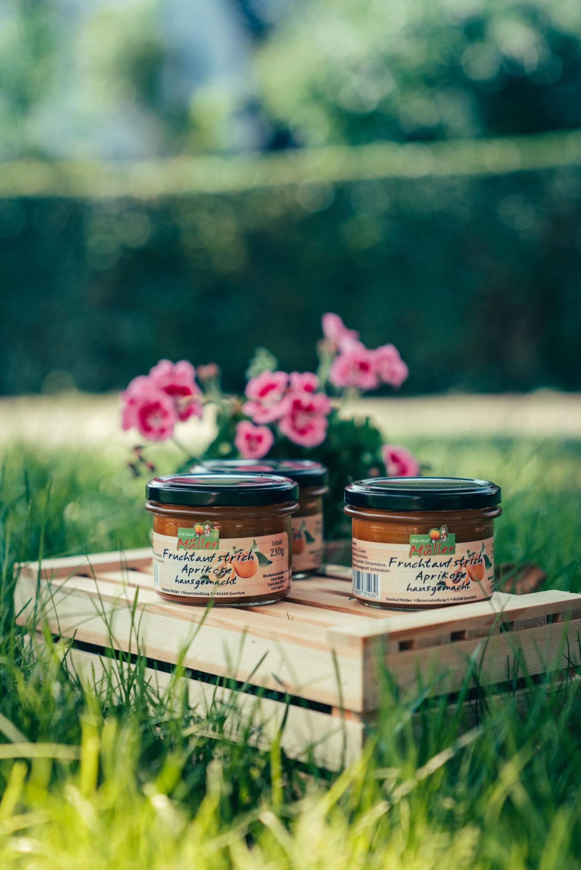 Im Hofladen sind etliche Fruchtaufstriche und mit dem kulinarischen Stern Sachsen-Anhalt ausgezeichnete Liköre zu finden. Das ist zum einen der berühmte Aprikosenlikör, der wunderbar sanft die Kehle herab gleitet und zum anderen der Gewinner des Sterns 2020, der Kirschlikör. Oder wie wäre es mit Apfelchips, Saft und anderen regionalen Erzeugnissen, wie Nudeln, Käse oder diverse Brände. Dieses bunte Sortiment gibt es in Querfurt zu entdecken.
