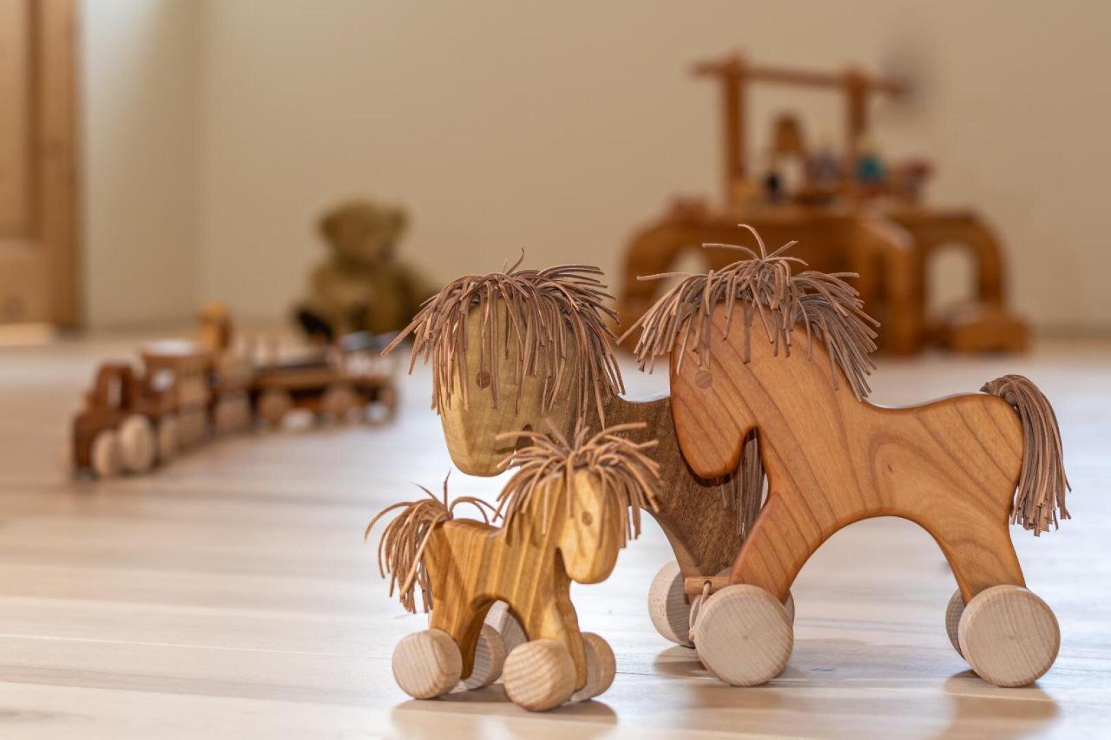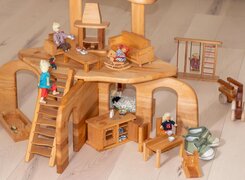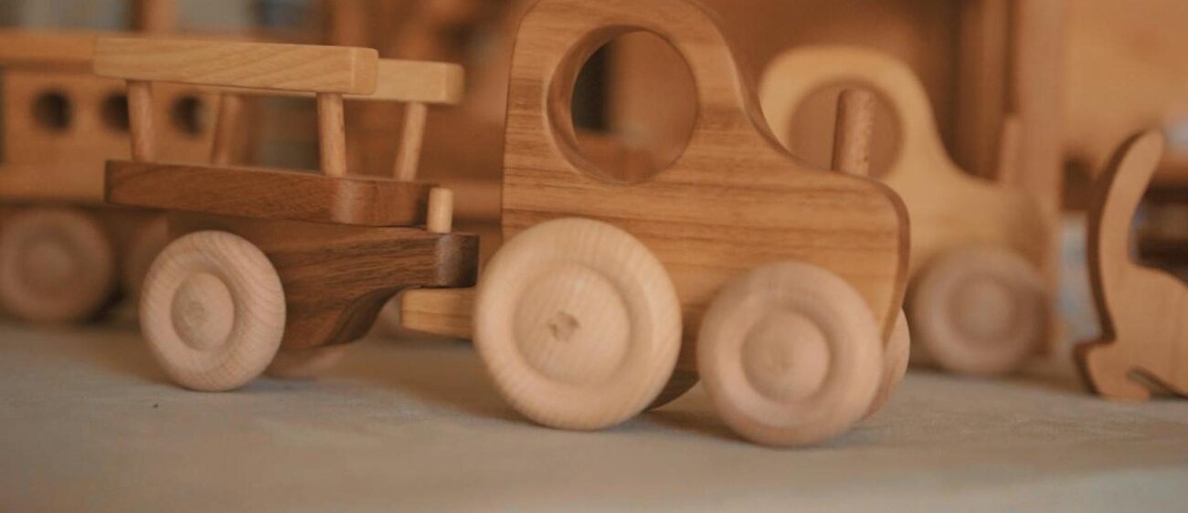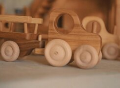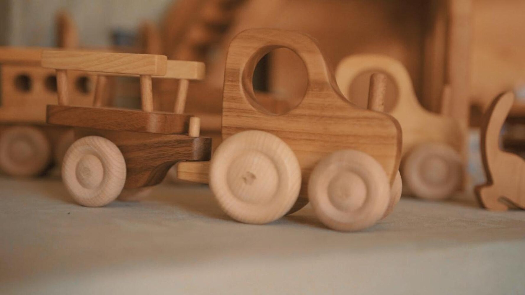 Holz ist seine Passion und nach der Lehre zum Tischler haben es ihm besonders die so vielseitigen Spielzeuge angetan. Wichtig ist ihm, die regionalen Ressourcen zu nutzen. Daher ist das Holz überwiegend aus „Nachbars Garten“, wie die beiden betonen. Oft weiß schon das Holz, was es werden möchte, noch bevor Steffen überhaupt eine Ahnung hat. Am Ende einigen sie sich aber meistens – und es kommen individuelle und liebevoll gestaltete Unikate dabei heraus. Nach der Lagerung und Trocknung des Holzes entstehen so in Kleinserie faszinierende, ökologisch einwandfreie und natur-belassene Spielzeuge, die Generationen begleiten können.