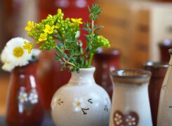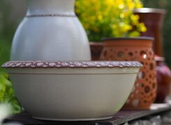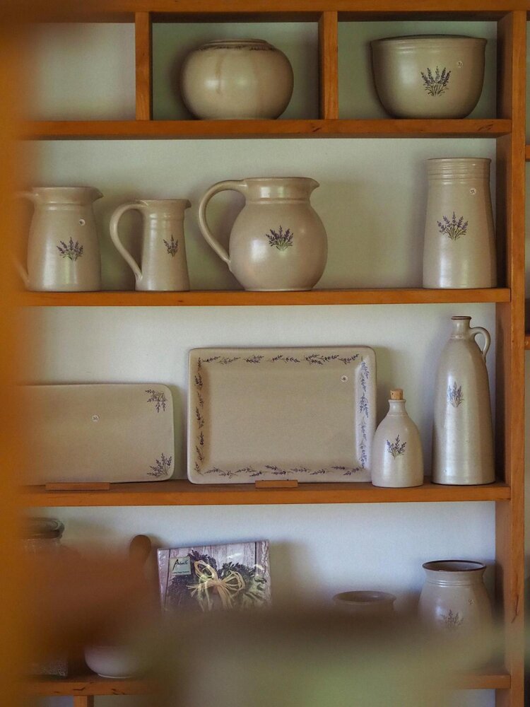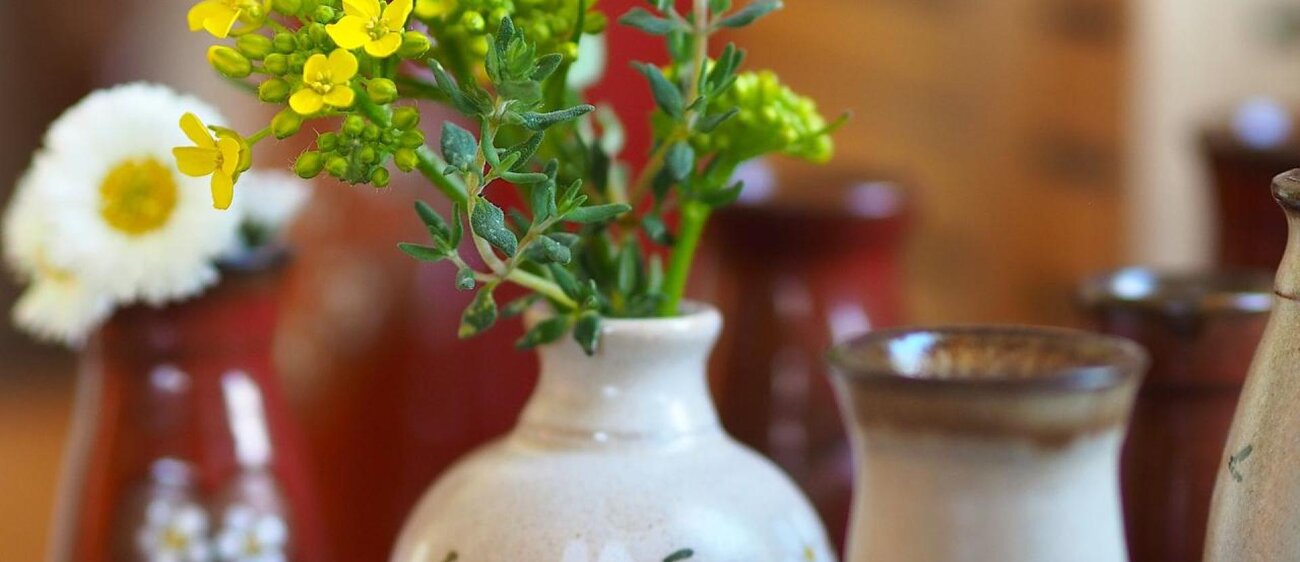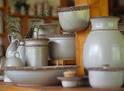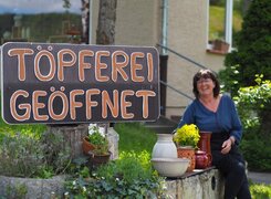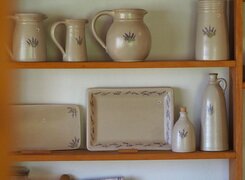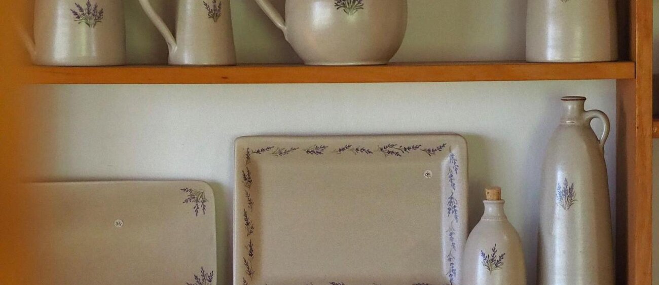 Die Töpferei von Uta Mill ist eine kleine, feine Keramikwerkstatt in Golmsdorf bei Jena, die sich auf handgedrehte Gebrauchskeramik spezialisiert hat. Mit viel handwerklicher Erfahrung entstehen dort auf der Töpferscheibe formschöne und alltagstaugliche Gefäße – jedes Stück ein Unikat. Typisch für ihre Arbeiten sind seidenmatte Glasuren in Braun und Hell, oft verziert mit liebevoll gemalten Lavendelmotiven.
