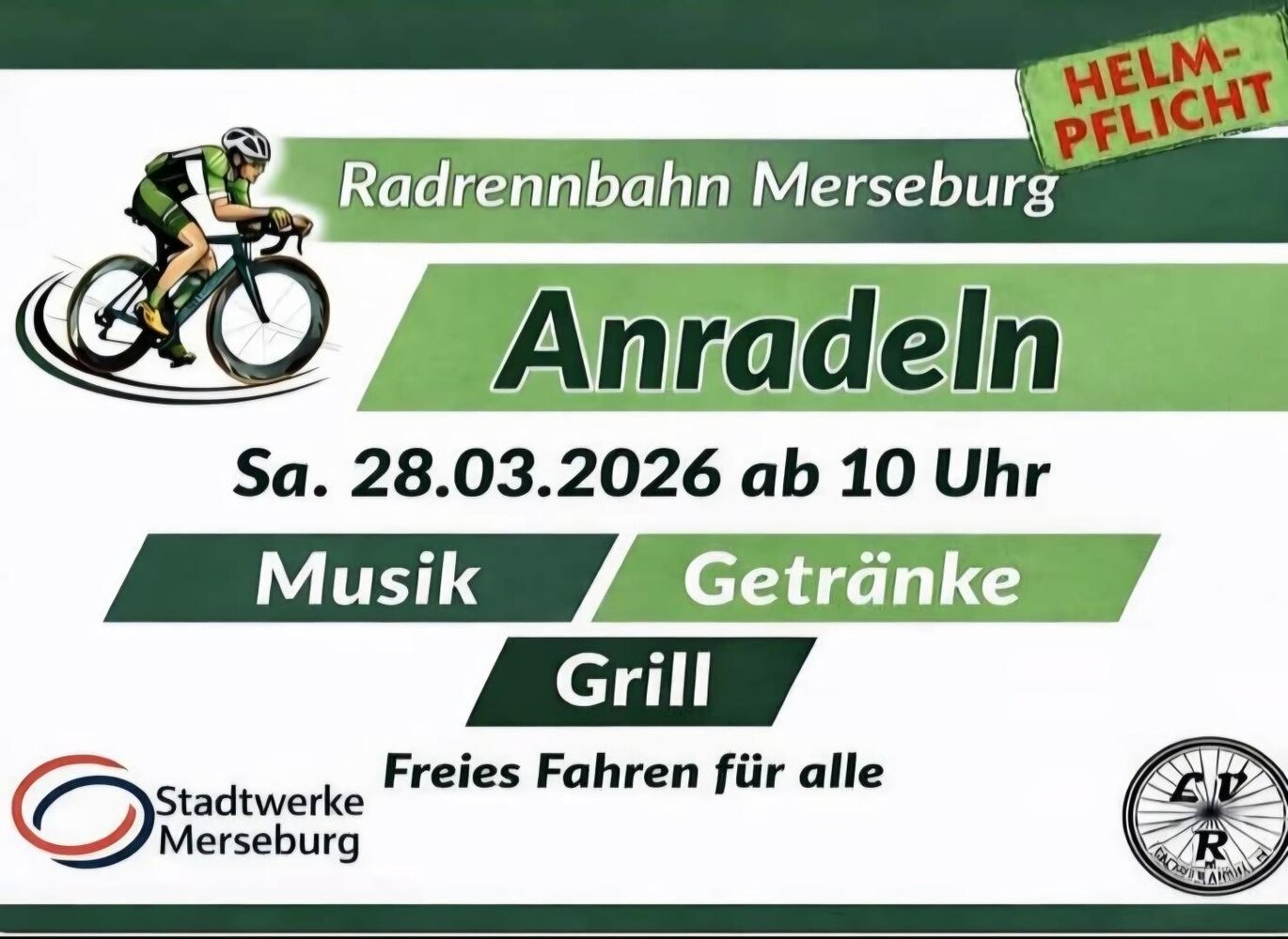 Am 28.03.2026 findet unser beliebtes Anradeln auf der Radrennbahn in Merseburg statt. Ein Event für die ganze Familie. Ob groß, ob klein. Kommt vorbei und radelt mit.