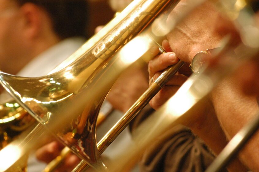 Der Posaunenchor Jena lädt ein, während des samstäglichen Stadtbummels und Markttreibens ein paar Minuten bei Bläserklängen auf dem Kirchplatz zu verweilen. Aus den geöffneten Fenstern des Brautportals an der Südfassade der Stadtkirche spielen Mitglieder des Posaunenchores Choräle und andere Bläserwerke.