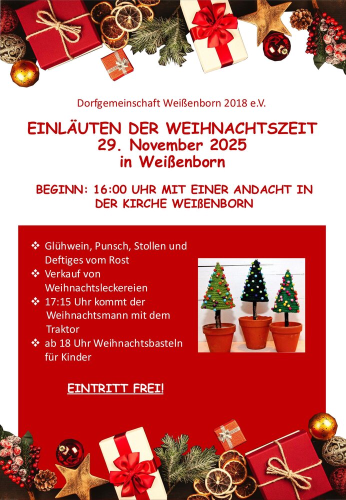 BEGINN: 16:00 UHR MIT EINER ANDACHT IN DER KIRCHE WEIßENBORN