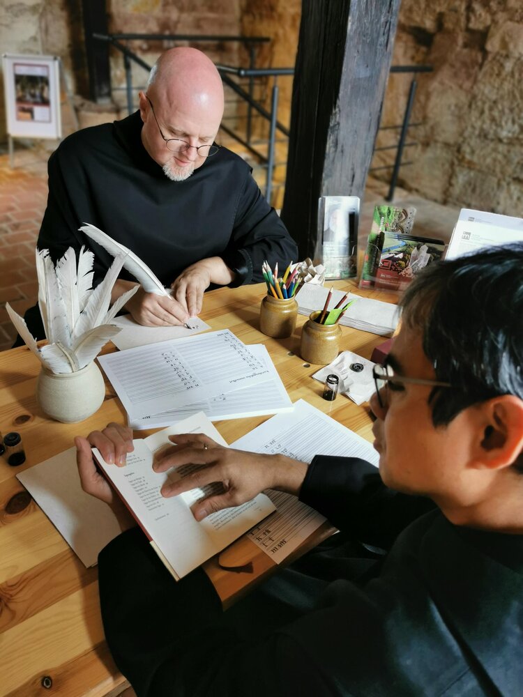 Viele mittelalterliche Bücher, die in Klöstern produziert wurden, besitzen wunderschöne von Hand gemalte Bilder mit strahlenden Farben. Wie wurden diese Farben hergestellt und woraus wie hafteten auf dem Pergament? Nach einer Führung durch die klösterliche Schreibstube kannst Du Deine eigenen Farben zusammenmischen und Dich im Malen üben.