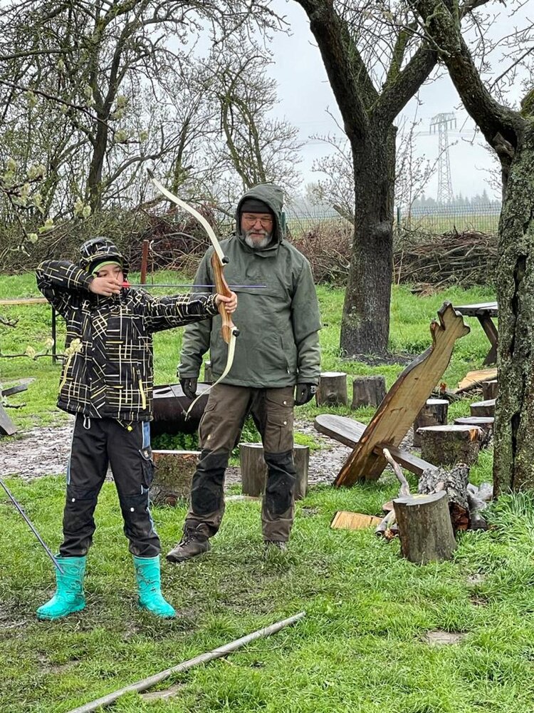 -Spuren lesen, - Pirschen, Tarnen und Verstecken, -Bogenschießen,- am Lagerfeuer braten